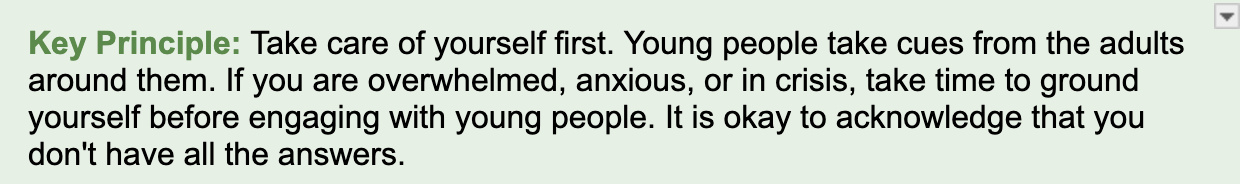 You cannot pour from an empty cup. Supporting young people through crisis requires attending to your own well-being.