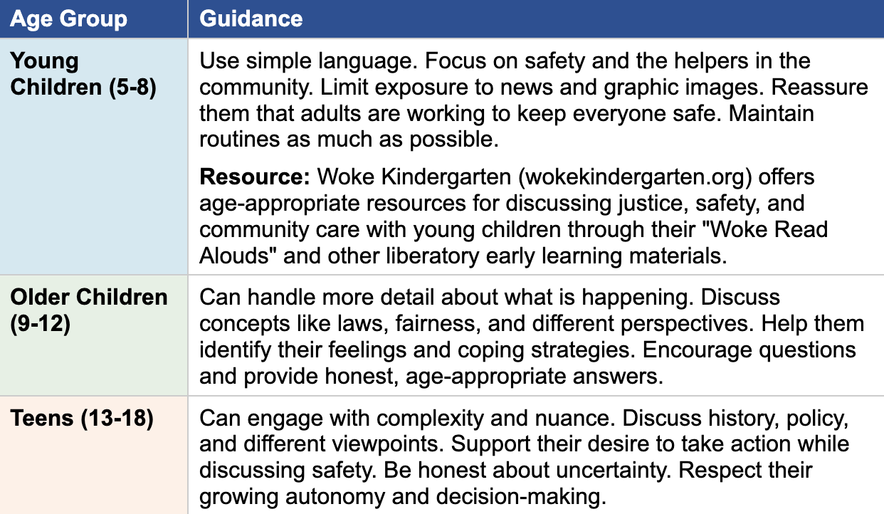 Even young people who are not directly at risk of deportation are affected by what is happening in their communities. The psychological weight of witnessing state violence against neighbors, the disruption of school and daily routines, and the pervasive atmosphere of fear all take a toll. Young people may experience: