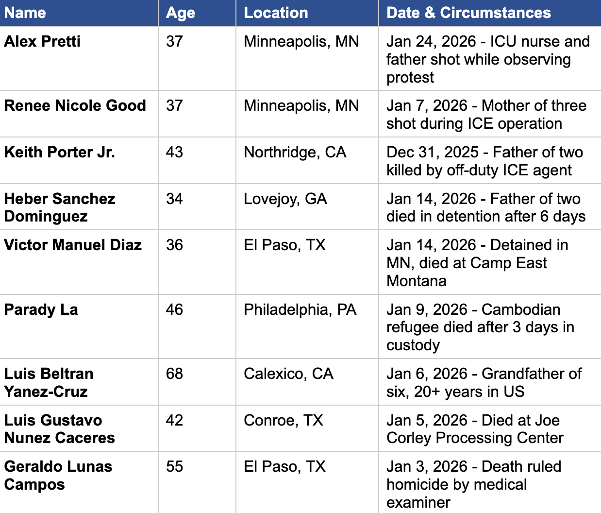 Beyond Minnesota: Lives Taken by Federal Immigration Agents