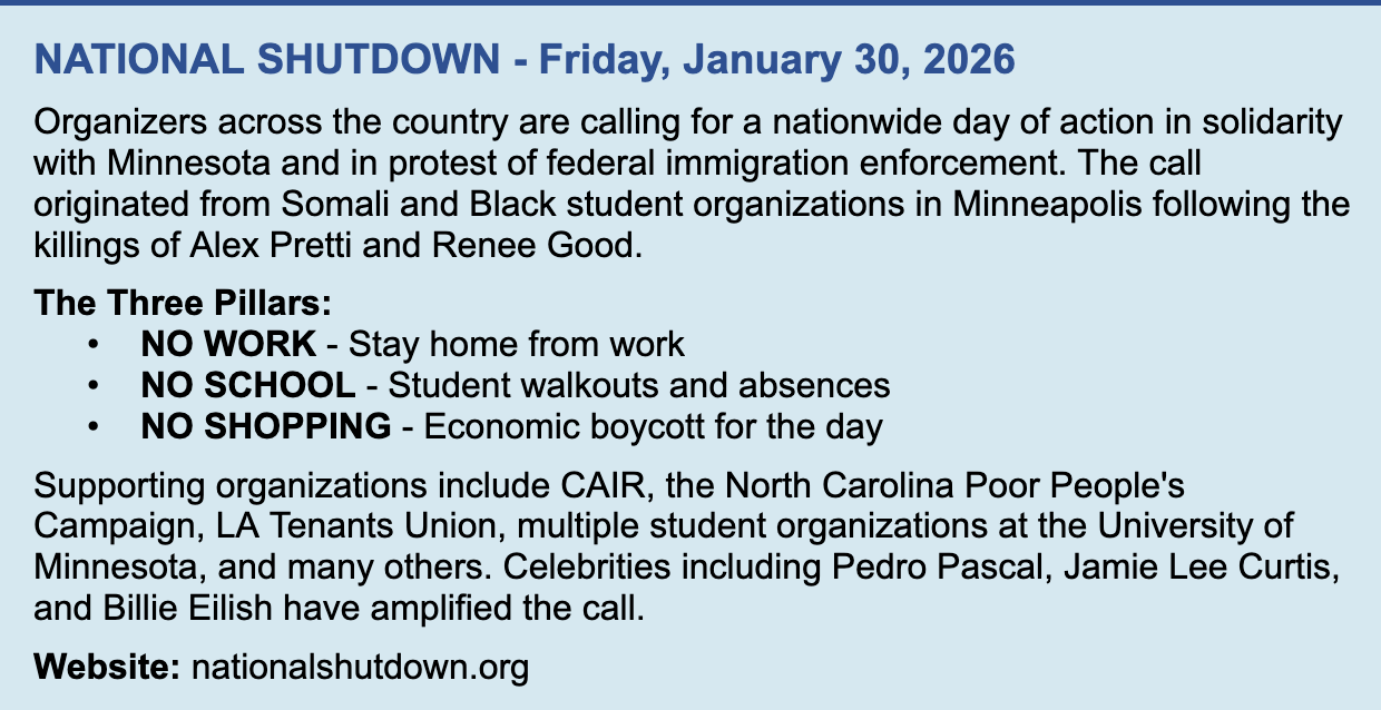Participating in the January 30th Nationwide Shutdown